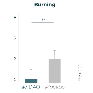 More than 18 years of scientific research have been dedicated to the characterisation and clinical validation of adiDAO® in supporting histamine metabolism. The clinical benefits of adiDAO® in digestive comfort and gut function have been demonstrated in a randomised, double-blind, placebo-controlled trial. Its efficacy is supported by application patents and regulatory recognition, including EU Novel Food and GRAS status.